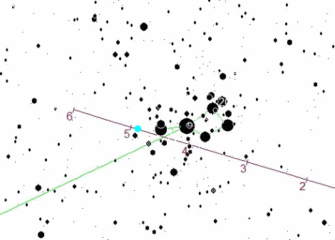 Die enge Begegnung der Venus mit Regulus wird nur mit einem Fernglas oder Teleskop gut zu beobachten sein: Zu groß ist der Helligkeitsunterschied für eine Sichtbarkeit mit bloßem Auge. (Regulus +1,4 mag - Venus -4,3 mag) Eine gute Uhrzeit für die Beobachtung ist 5 Uhr. Regulus steht dann 12 Grad über dem Horizont und es ist noch dunkel genug. |
