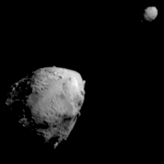 | Als die DART-Sonde der NASA am 27. September 2022 auf dem Asteroidenmond Dimorphos einschlug, war dies ein voller Erfolg für die Mission: Die Umlaufzeit des Objekts um den Asteroiden Didymos hatte sich um mehr als eine halbe Stunde verkürzt. Als Test einen für die Erde gefährlichen Planetoiden abzulenken. |