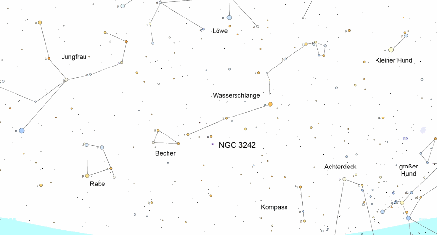 Hinter „Jupiter´s Geist“ verbirgt sich ein planetarischer Nebel mit der Katalognummer NGC 3242. Der Nebel ist einer der hellsten planetarischen Nebel. Den Spitznamen Geist von Jupiter hat er erhalten, da die 30 bis 40 Bogensekunden große, nicht ganz kreisförmige Scheibe in kleinen Teleskopen einem geisterhaften Abbild Jupiters gleicht.