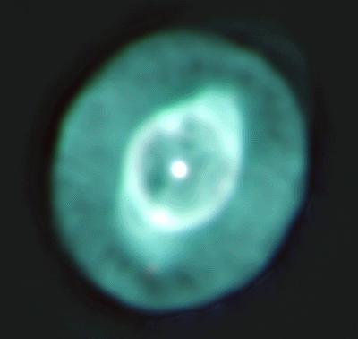 Beim Nebel handelt es sich um die abgestoßene Hülle des Roten Riesen, der jetzt zum weißen Zwerg zusammen gestürzt ist und eine Temperatur von 60 000 Grad und Helligkeit von 12,1 mag besitzt. Er ist in Teleskopen erst ab 20 cm Öffnung zu sehen, da er sich vom hellen Nebel kaum abhebt. Dieser regt durch seine starke UV-Strahlung den Nebel zum Leuchten an. Dessen scheinbare Helligkeit liegt bei 7,7 mag. Das Gas erscheint uns visuell bläulich-grün, da die Hauptemission von zweifach ionisiertem Sauerstoff (O III) stammt. Allerdings ist die Farbe nur mit großen Teleskopen – oder bei Aufnahmen mit langer Belichtungszeit – zu sehen.