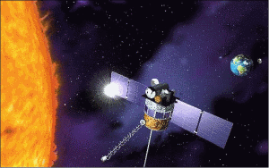 - Durch die geladenen Teilchen des Sonnenwinds kann in den Satelliten ein elektrischer Strom induziert werden, der den Satelliten schädigt, wenn nicht Maßnahmen zum Schutz des Satelliten ergriffen wurden.