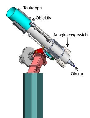 Das neue Teleskop ist ein Refraktor (Linsenteleskop) mit einem voll geschlossenem Tubus, bei dem sich die Linse in der Nähe der Kuppelöffnung befindet.