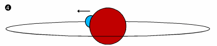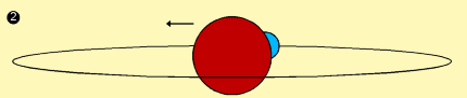 Mit Hilfe des Durchmessers der Komponente B und der gesamten Umlaufzeit, lässt sich die Zeit, die die Bedeckung dauert, berechnen. Der Lichtabfall (2) und der Lichtanstieg (4) werden etwa über vier Tage zu beobachten sein. |