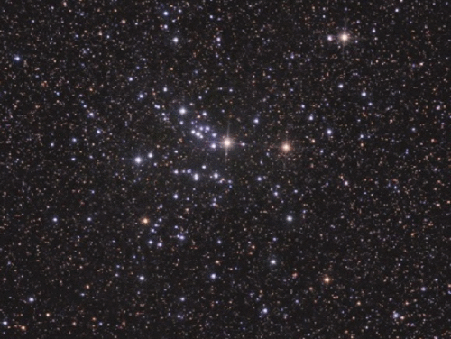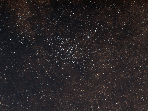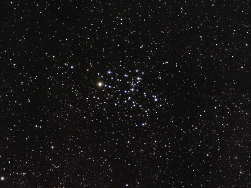 Die Sternansammlung von etwa 150 Sternen liegt in einem sternreichen Gebiet und ist schon in einem Feldstecher aufgelöst, bei schwacher Vergrößerung erscheint er im Teleskop eindrucksvoll. Der offene Sternhaufen hat eine Entfernung von 2150 Lichtjahren. |