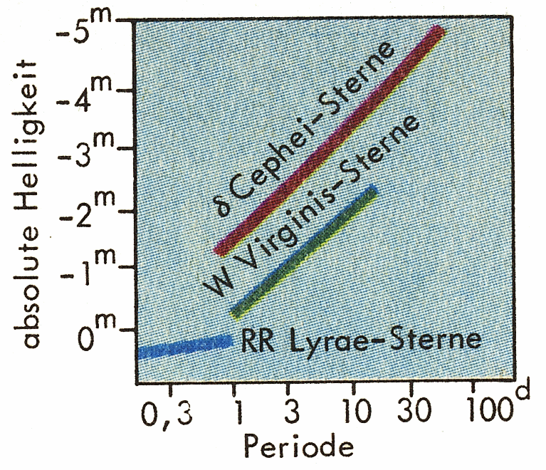 Grundlage waren aber W Virginis Sterne (eine Untergruppe der delta Cepheiden), die durch ihre große Masse eine erheblich größere Leuchtkraft haben.