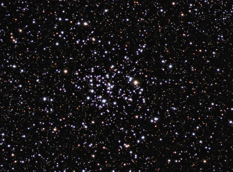 Messier 50 ist ein +5,9 mag heller offener Sternhaufen und hat die Katalognummer NGC 2323. Er besitzt eine Winkelausdehnung von 16 Bogenminuten, was einem Durchmesser von 14 Lichtjahre entspricht. Messier 50 ist im Sternbild Einhorn zu finden. Seine Entfernung zum Sonnensystem beträgt etwa 3000 Lichtjahre, er liegt 70 Lichtjahre südlich der Milchstraßenebene. |