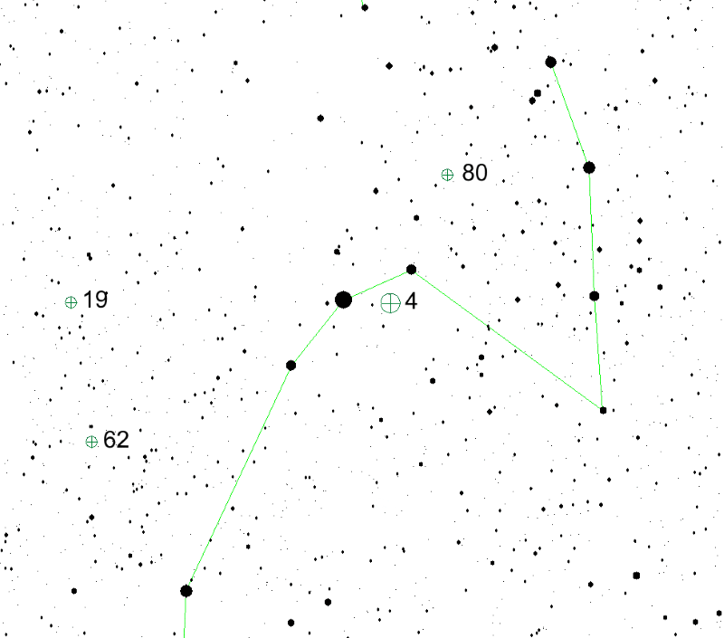 In der Karte rechts sind angegeben die Nummern im Messier-Katalog der anderen, eingezeichneten Kugelsternhaufen