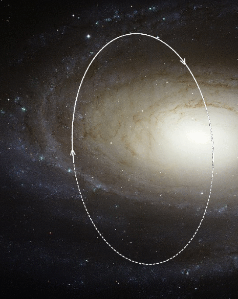 Seine Radialgeschwindigkeit wurde gemessen und ergibt eine Umlaufzeit von 115 Millionen Jahren um das Zentrum der Milchstraße. Dabei beträgt das Perigalaktikum 2000 Lichtjahre, das Apogalaktikum 20000 Lichtjahre. Die Umlaufbahn ist um 23 Grad gegenüber der Milchstraßenebene geneigt. Er kommt daher dem Zentrum bis auf 2000 Lichtjahre nahe und erfährt eine deutliche Gezeitenkraft. (das heisst er zieht beim Durchstoßen der Milchstraßenebene in der Nähe des Zentrums Gas und Staub mit sich)