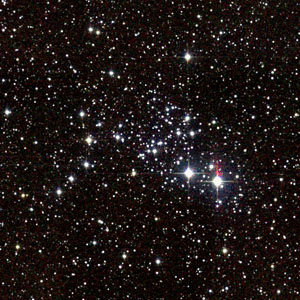Messier 93 ist ein offener Sternhaufen im nördlichen Teil des Sternbilds Puppis (Achterdeck des Schiffes Argo). Entdeckt wurde der Sternhaufen 1781 von Charles Messier (1730-1817) Unabhängig von ihm fand zwei Jahre später Caroline Herschel (1750-1848), die jüngere Schwester von William Herschel (1738-1822), den offenen Sternhaufen. Walter Houston (1912-1993, Journalist) beschrieb ihn folgendermaßen: „Mit einem ziemlich großen Teleskop hat der Sternhaufen das Aussehen eines Seesterns, aber ein 4-Zoll-Refraktor vermittelt den Eindruck eines typischen, dicht besetzten offenen Sternhaufens“. |