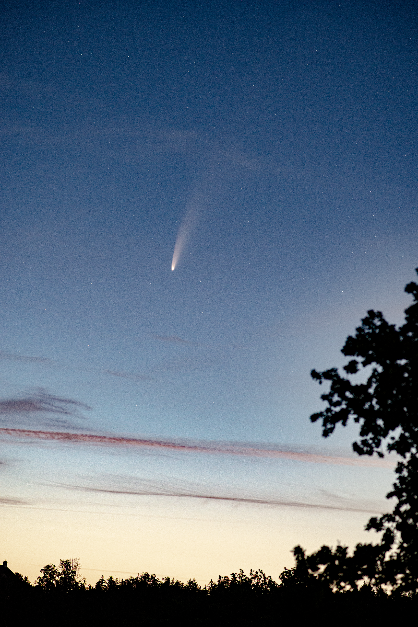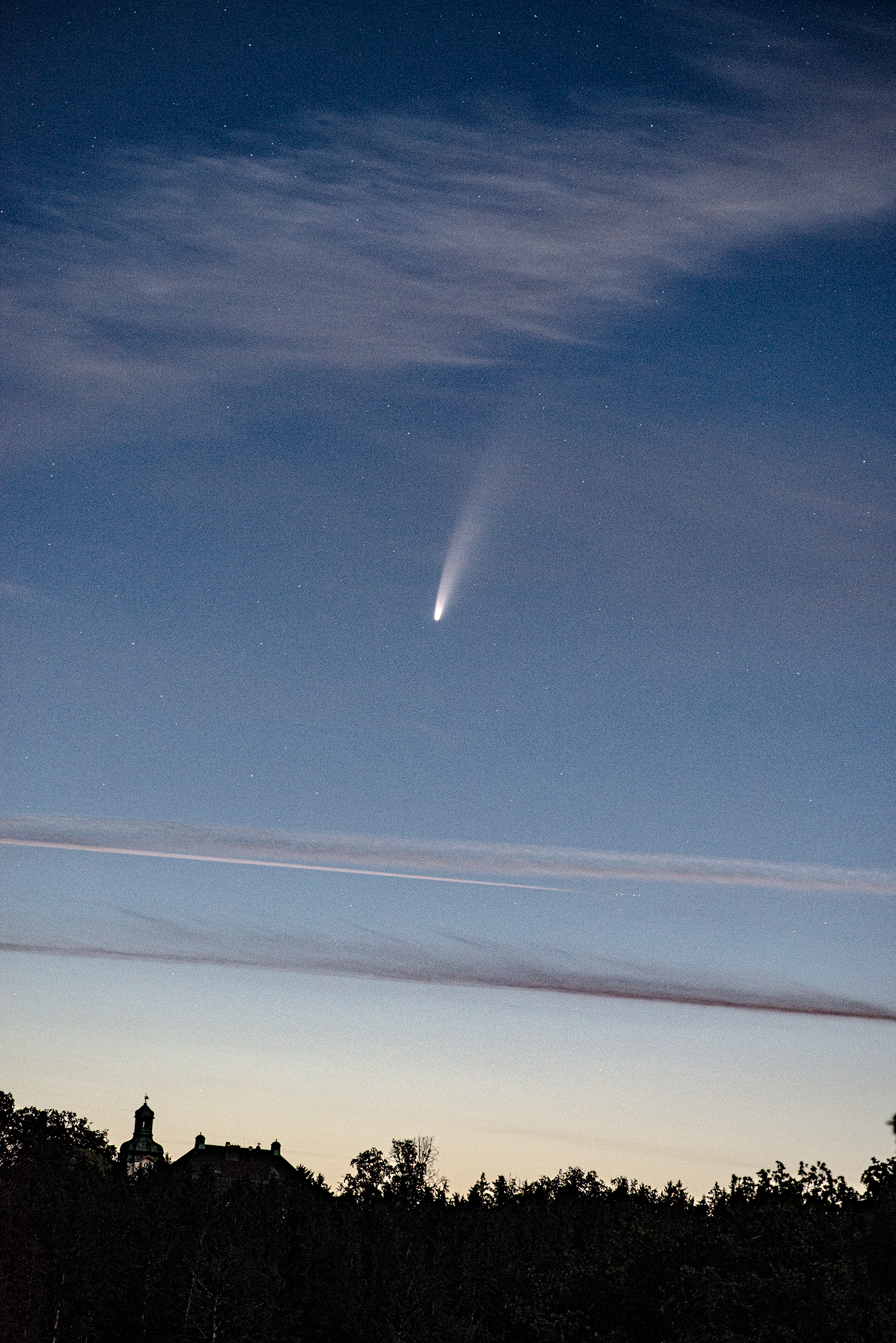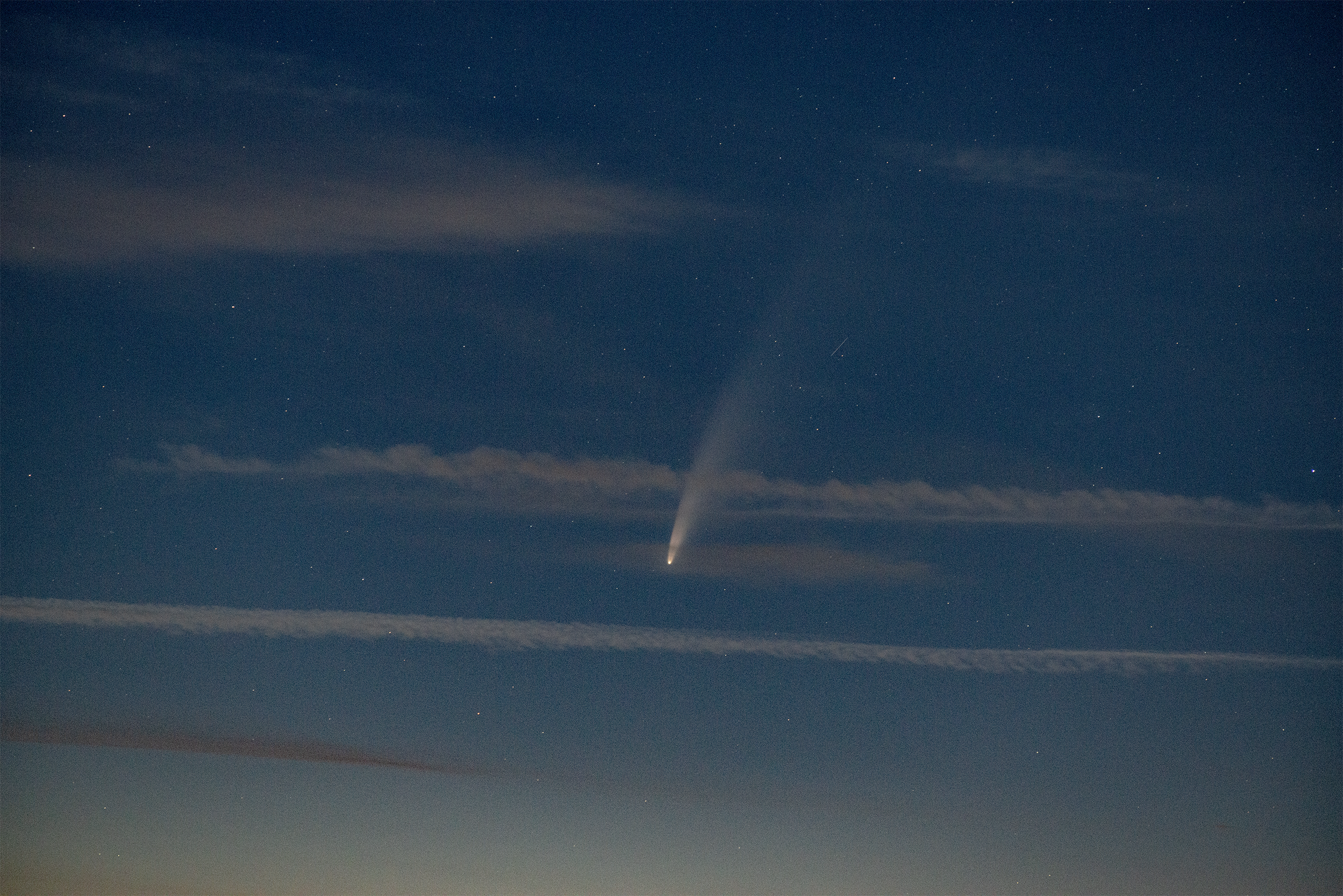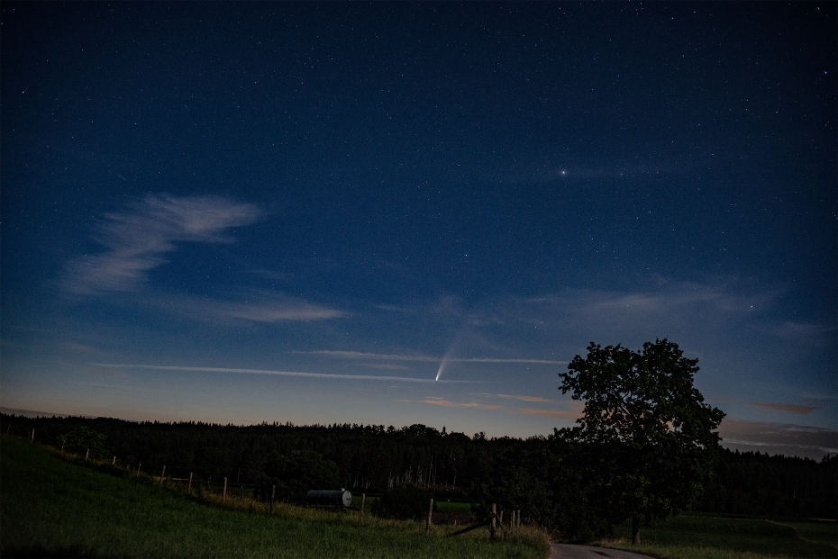 Auf dieser Ausschnittsvergrößerung reicht der Schweif fast bis Menkalina (beta Aurigae, 1,9 mag), der Schweif hat damit eine Länge von etwa 7 Grad auf dieser Aufnahme.