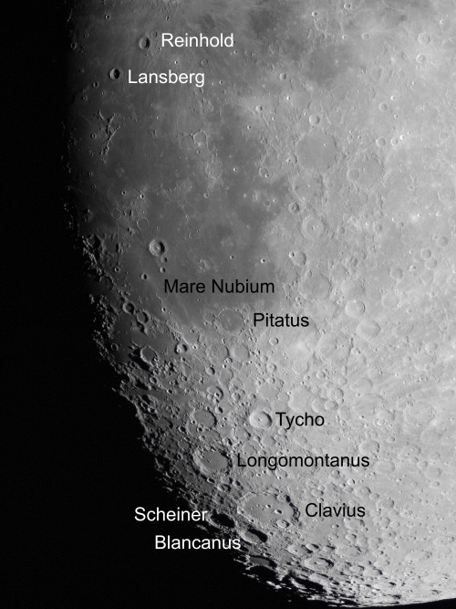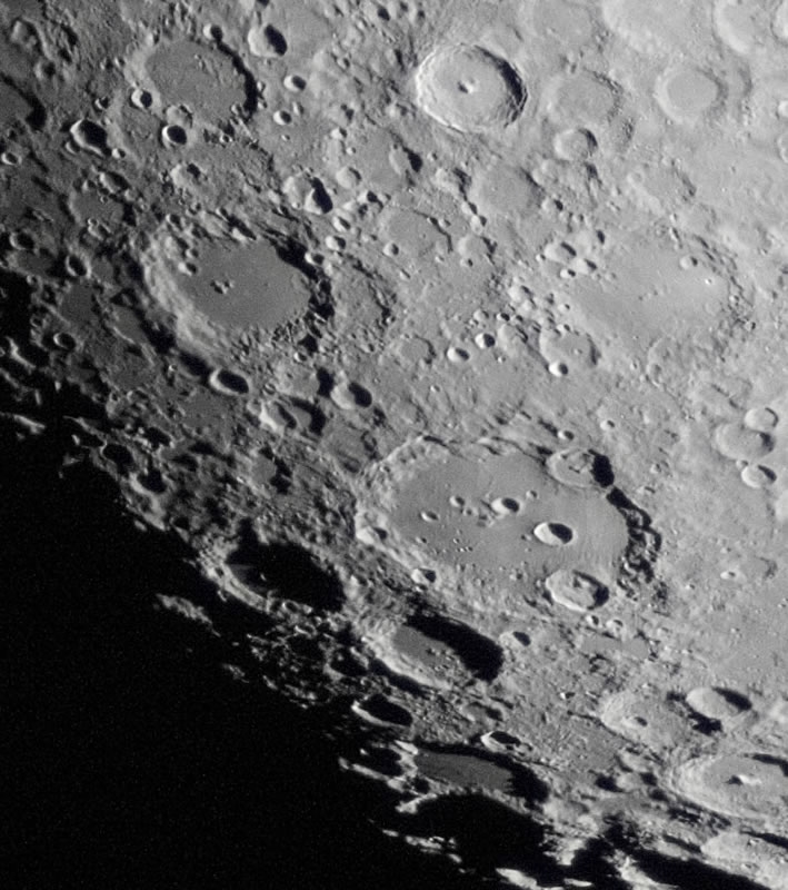 Die Wallebene Clavius liegt im südlichen Hochland und hat einen Durchmesser von 230 Kilometer. Auf seinem Talboden, der 3500 m unter den Gipfeln des Wallbergs liegt, befinden sich einige kleinere Einschlagskrater.