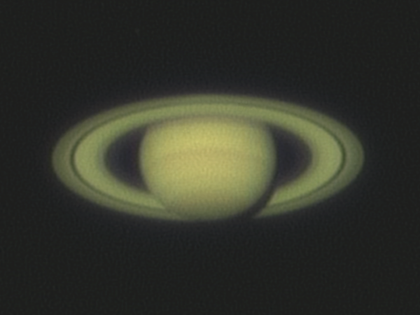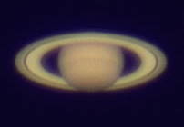 Hier eine Aufnahme 5 Wochen nach seiner Opposition von 2005 mit seiner größtmöglichen Ringöffnung. Da die Rotationsachse um 26° zur Umlaufbahn geneigt ist, und Saturn wie ein stabiler Kreisel, seine Lage im Raum beibehält, verändert sich die Ansicht der Ringe im Laufe eines Umlaufes von der Erde aus gesehen: große Ringöffnung von Norden - Ringe von der Kante - große Ringöffnung von Süden - Kantenstellung - große Ringöffnung von Norden. | |||||||||