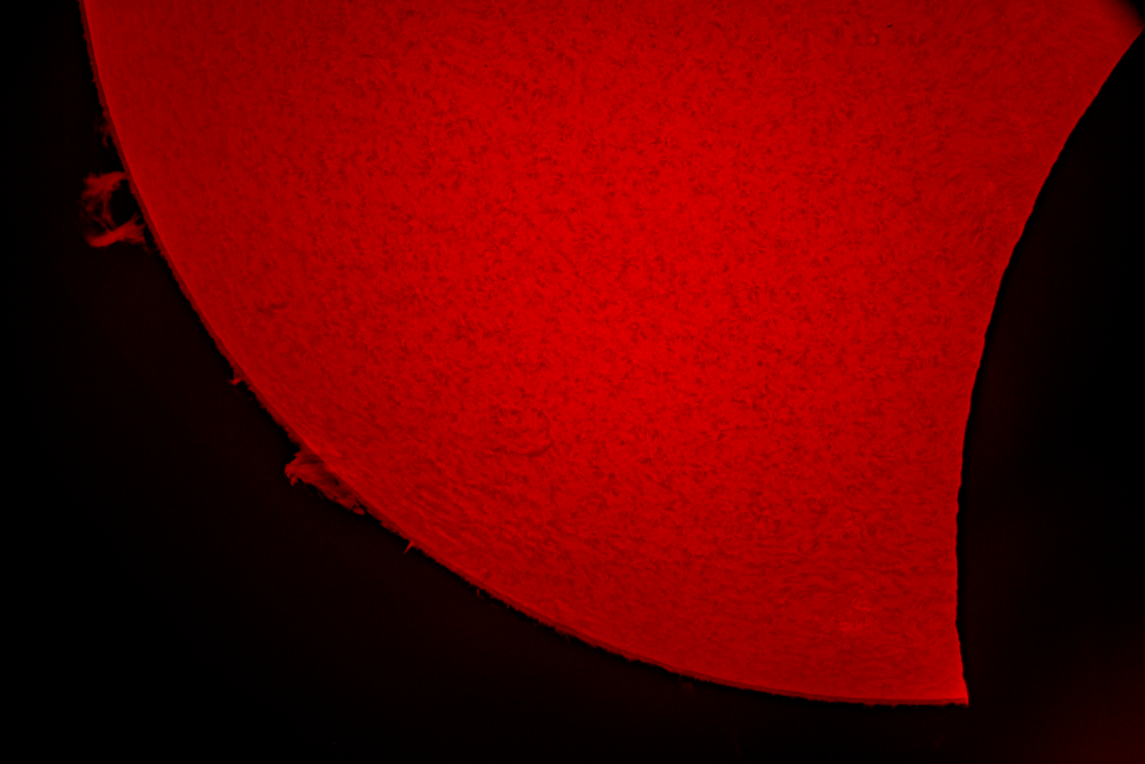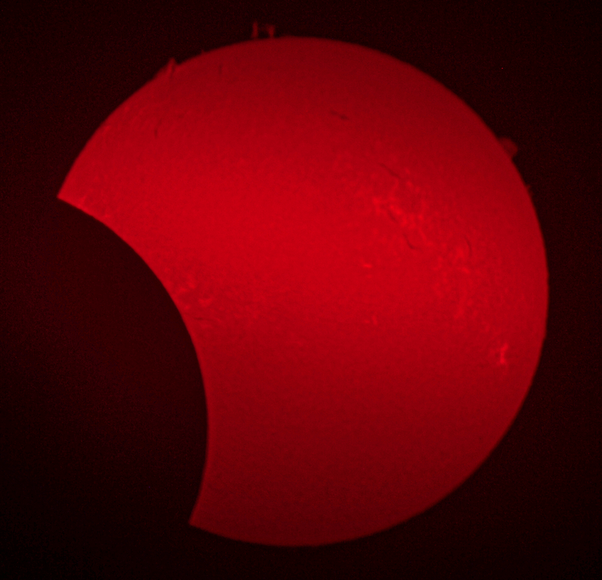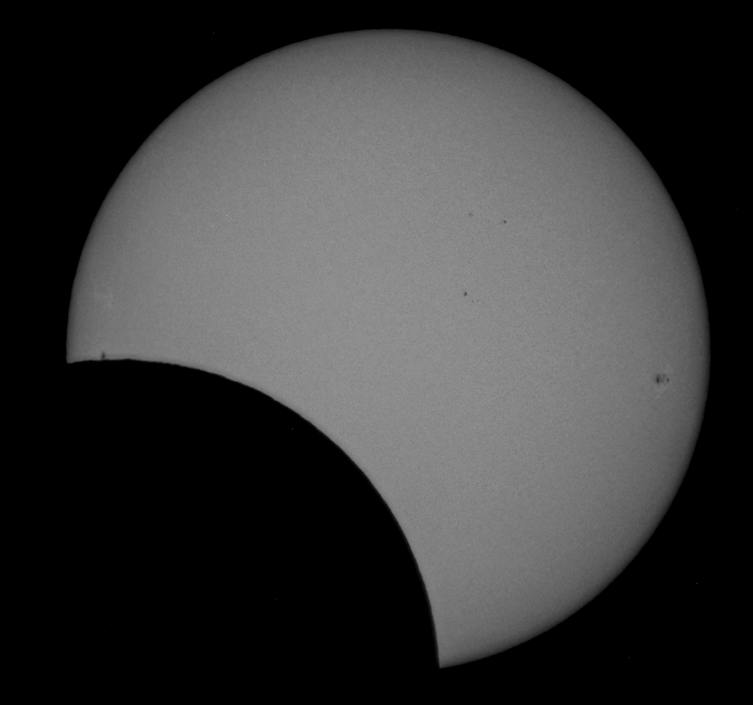 Der Mond schiebt sich immer weiter vor die Sonne. Im rechten Bild bedeckt der Mond in den nächsten Sekunden einen Sonnenfleck. | ||||||||||||||||||||||||||||||||