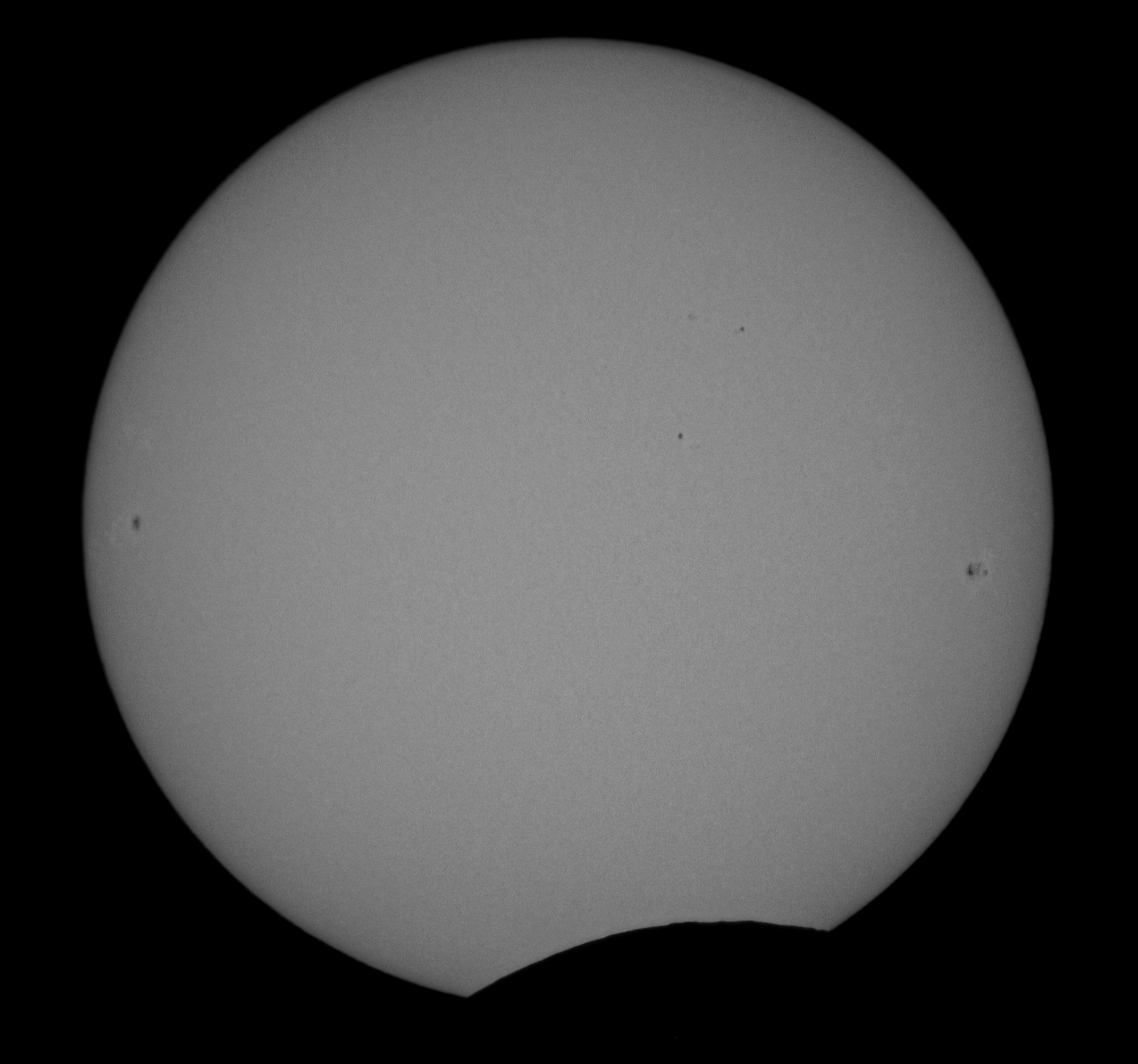 Die Aufnahmen zeigen Sonnenflecken und den Rand des Monds. Außerdem ist deutlich die Drehung der Sonne auf ihrer Bahn im Tageslauf zu erkennen. | ||||||||||||||||||||||||||||||||