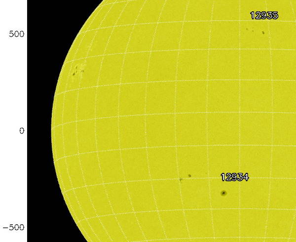 Rechts Bild der Sonne, täglich unter