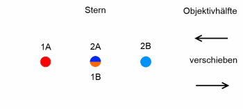 Zur Messung eines Winkels zwischen zwei nahen Sternen werden die beiden Teilbilder so verschoben, dass drei Sterne zu sehen sind und die Verschiebung der Objektivhälften wird mit einem Nonius gemessen. Diese Verschiebung ergibt (abhängig von der Objektivbrennweite) den Winkelabstand der beiden Sterne.