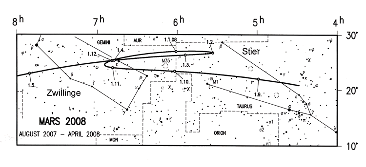 Stationär dann rückläufig am 15.11.07 Stationär dann rechtläufig am 30.1.08 |
