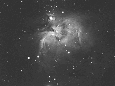 Der Orionnebel ist ein Gasnebel und etwa 1400 Lichtjahre von uns entfernt, er hat einen Durchmesser in der Größenordnung von 15 Lichtjahren. Die Gesamtmasse wird auf etwa 700 Sonnenmassen geschätzt. Er hat eine Dichte von 1000 Atome pro Kubikzentimeter (bestes auf der Erde erzeugtes Vakuum enthält eine Million mal mehr Atome pro Kubikzentimeter) und eine kinetische Temperatur von 10.000 Kelvin. Er gehört zu den Emissionsnebeln. Eingebettet in den Nebel befindet sich ein junger Sternhaufen, der gerade aus dem Nebel entstanden ist. Dessen heiße Sterne sind für die Ionisation des Nebels verantwortlich und bringen ihn damit zum Leuchten. In dem Nebel befindet sich eine Anordnung von Sternen, die als Trapez bekannt sind. Einer der vier Sterne ist Theta Orionis. An Tagen mit guter Luftruhe und Durchsicht kann mit Teleskopen mit mehr als 20cm Öffnung die Sterne E und F (5. und 6. Stern) im Trapez gesehen werden. An beiden Seiten dieses Zentralgebiets befinden sich Gas-Ausläufer, die sich zu einem Ring schließen. |