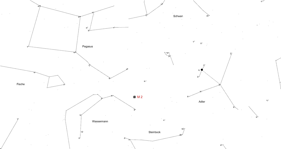 Dieser Kugelsternhaufen befindet sich im Sternbild Wassermann. Er gehört zu den reicheren und kompakteren Kugelsternhaufen mit einer Helligkeit von 6,3 mag. Seine Winkelausdehnung beträgt 16´, was bei einer Entfernungen von 50 000 Lichtjahren einem Durchmesser von 150 Lichtjahren entspricht. |