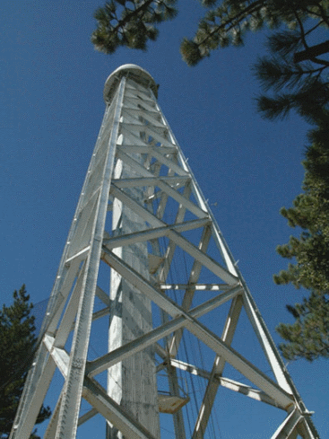 Das 60-Fuß (20m) - Turmteleskop. Nach erfolgreichem Betrieb, aber mit zu kleinem Sonnenbild, wurde 1909-1912 das 150-Fuß (45m) – Turmteleskop errichtet. |