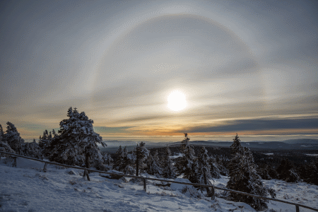 Im Gegensatz zu vielen anderen Leuchterscheinungen am Himmel, muß man für eine Halo weder auf die Dunkelheit warten noch nachts aufstehen. Die einzelnen oder mehreren weißlich-blassen Lichtringe um die Sonne sind mitten am Tage sichtbar.