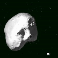 Die damit gewonnen Bilder (links) zeigen einen zerbeulten Himmelskörper mit scharfen Kanten. Als sich der Kleinplanet während der Beobachtung weiterdrehte, erschien eine dunkle Struktur, als ob jemand ein Stück herausgebissen hätte. Die Astronomen vermuten, dass Juno vor nicht allzu langer Zeit mit einem anderen Himmelskörper zusammenstieß. Dabei blieb ein etwa 100 Kilometer durchmessender Krater zurück.