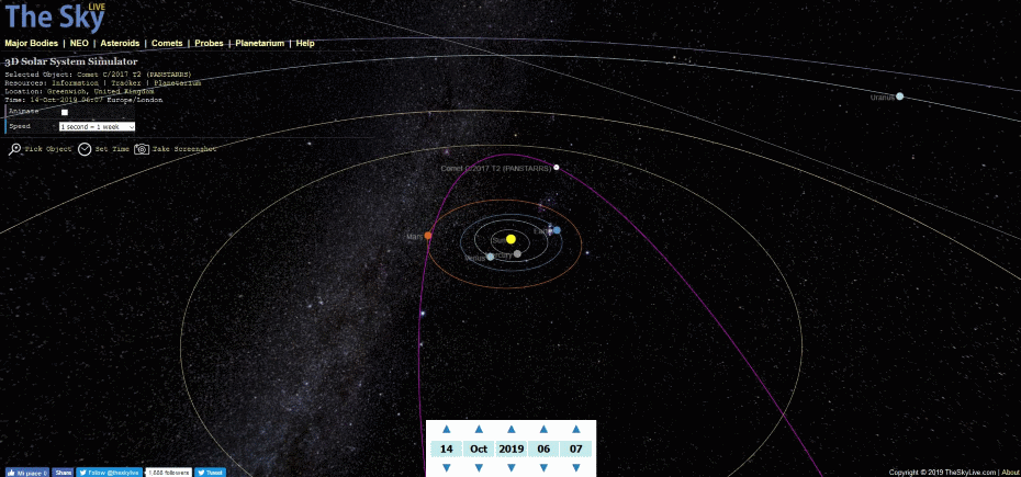 Der Komet mit der Bezeichnung C/2017 T2 wurde am 2. Oktober 2017 mit dem 1,8-m Pan-STARRS1 Teleskop auf Haleakala, Hawaii, entdeckt. |
