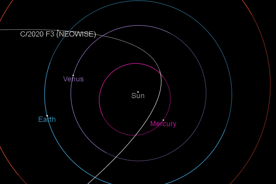C/2020 hat eine Umlaufzeit von ca 7300 Jahren und gehört zu den langperiodischen Kometen. Er nähert sich der Sonne bis auf 0,30 astronomische Einheiten. Die größte Entfernung sind etwa 750 AE (Aphel). Die Bahn ist um 129 Grad gegenüber der Ekliptik geneigt.