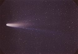Halley´scher Komet (1P/ Halley)Er ist wohl der bekannteste der periodischen Kometen mit einer Umlaufzeit von rund 76 Jahren. Die langgestreckte Bahn reicht weit über die Neptunbahn hinaus. Er ist nach dem Physiker Edmond Halley benannt, der 1705 seine Bahn berechnete. |