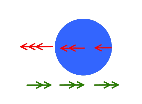 Eine Grundlage ist, das sich Gravitationskräfte ungestört überlagern und deshalb getrennt betrachtet und überlagert werden können. Wir betrachten zwei verschiedene Bezugssysteme: |