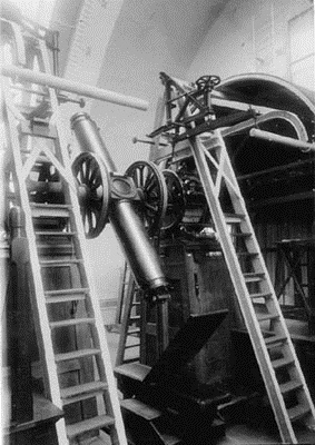 Für die exakte Bestimmung der mittleren Ortszeit waren noch bis in den 50iger Jahre des 20. Jahrhunderts die Sternwarten verantwortlich. Sie haben jeden Morgen um 6 Uhr ein Zeitsignal über Telegraf an die Bahnhofsuhren übermittelt. Zur Bestimmung wurde der Meridiandurchgang eines bestimmten Sterns gemessen. Die Sternwarte Hamburg hat dafür ein spezielles Gerät – einen Meridianakreis. Das ist ein Fernrohr, das genau in Nord-Süd-Richtung aufgestellt ist. |