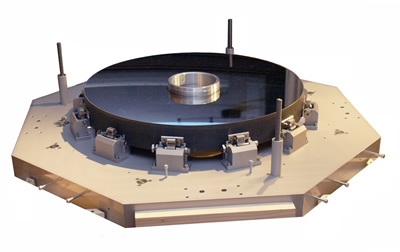 Der Spiegel muss sehr vorsichtig gehalten werden. Einerseits muss er mit seinem Gewicht von 45 kg präzise fixiert werden, andererseits darf durch die Halterung kein punktueller Druck auf den Spiegel ausgeübt werden, was eine Verformung der Oberfläche bedeuten würde.
