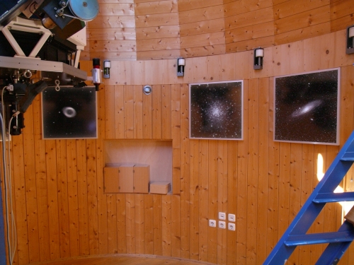 | Die Bilder veranschaulichen die Entwicklung eines Gasnebels zu einem offenen Sternhaufen. Rechts im Bild ist der apochromatische Refraktor mit einer Öffnung von 102 mm und 540 mm Brennweite zu sehen. Er wird zur Sonnen- und Kometenbeobachtung eingesetzt. |