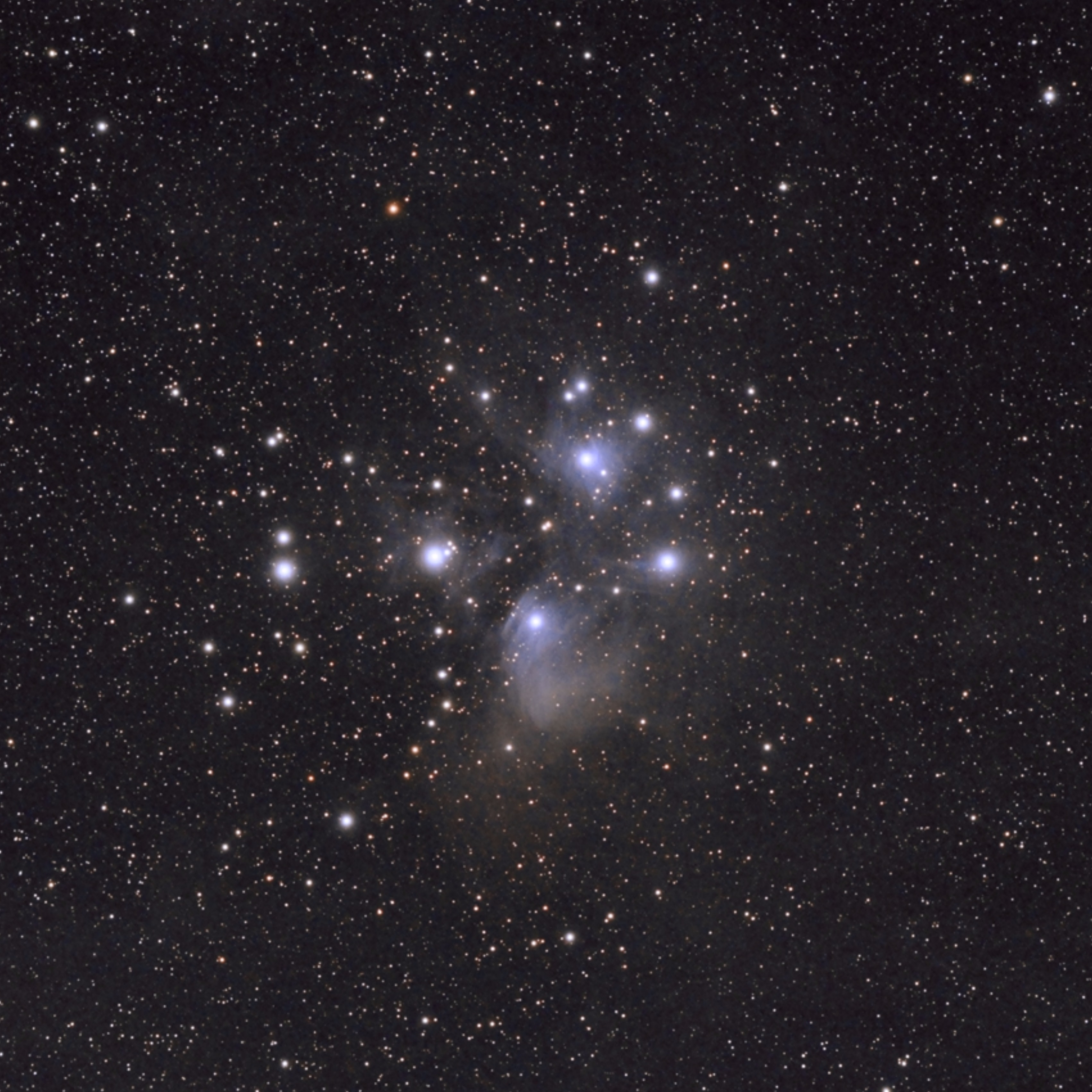 Die Plejaden im Sternbild Stier und das Paradebeispiel für einen offenen Sternhaufen.